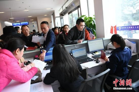 資料圖:成都市天府新區(qū)不動(dòng)產(chǎn)登記中心購(gòu)房者正咨詢(xún)相關(guān)政策。張浪 攝
