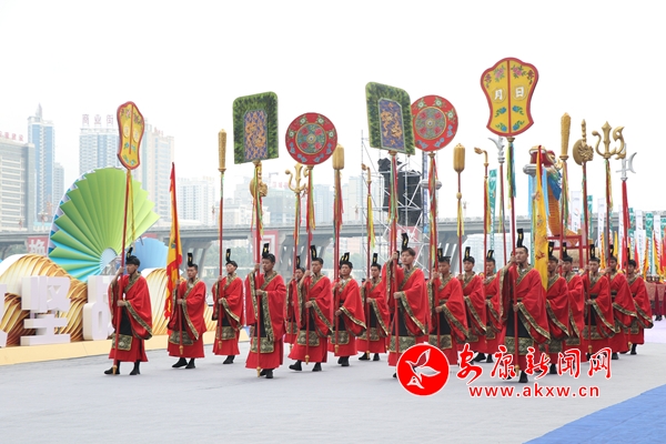 “請龍了”上午9時整,觀禮臺上空傳來小女孩清澈空靈的聲音,龍舟主題活動進入第一篇章——“龍騰漢江·祭”。百面大鼓同時敲響,請龍方陣步履矯健,護送龍頭至觀禮臺正中。百名少年兒童著漢服、持竹簡、頌祭文,主祭官捋龍須、撣浮塵、三叩首。18名壯漢敬酒摔碗祭龍頭,合龍方陣護送龍身緩步走來,鼓樂齊鳴中完成合龍。龍頭祭祀圓滿禮成,儀式莊嚴而神圣,傳遞出安康萬千百姓祈福風調雨順、萬家平安的美好心愿。NqA安康新聞網