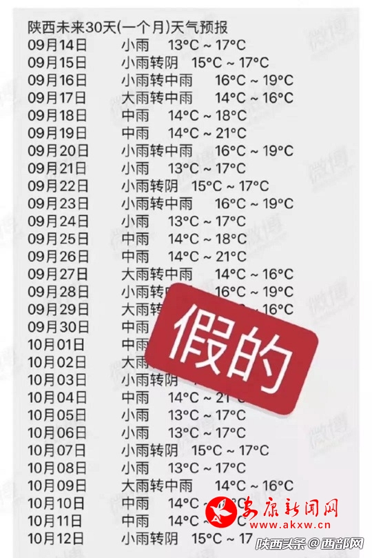 本網(wǎng)訊 這兩天,一張“陜西未來(lái)30天的天氣預(yù)報(bào)”圖片,在陜西人的朋友圈流傳。