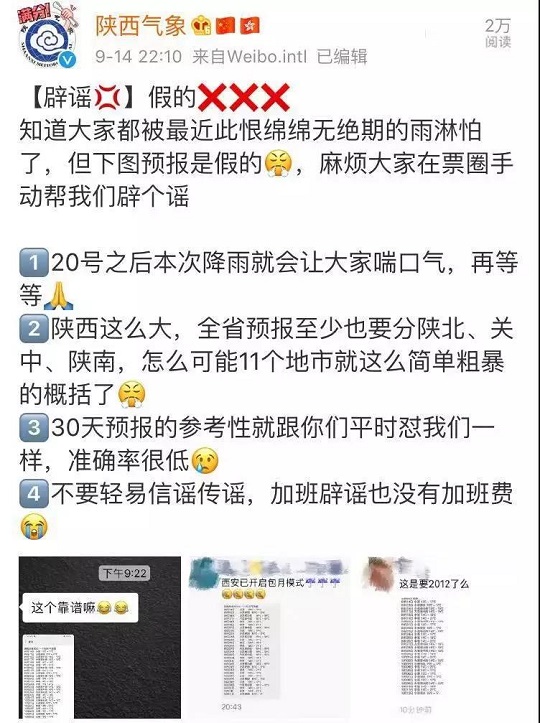 昨天晚上,陜西氣象官方微信對(duì)這一圖片進(jìn)行了辟謠。