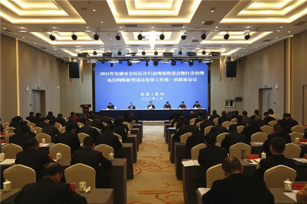 春風(fēng)吹奮進(jìn),反詐正當(dāng)時(shí),3月9日,中共安康市委、安康市人民政府在紫陽縣召開2021年安康市全民反詐行動(dòng)現(xiàn)場推進(jìn)會(huì)暨打擊治理電信網(wǎng)絡(luò)新型違法犯罪工作第一次聯(lián)席會(huì)議,認(rèn)真學(xué)習(xí)貫徹習(xí)近平總書記關(guān)于打擊治理電信網(wǎng)絡(luò)新型違法犯罪工作重要指示精神,全面落實(shí)中省部署新要求,推動(dòng)構(gòu)建“黨政主導(dǎo)、部門主責(zé)、公安主打、群眾主體”四位一體全社會(huì)反詐新格局,以“兩降四無”(發(fā)案數(shù)下降、群眾損失下降,無電信網(wǎng)絡(luò)詐騙案件、無詐騙犯罪嫌疑人、無“兩卡”涉案人員、無詐騙窩點(diǎn))為創(chuàng)建標(biāo)準(zhǔn),在全省率先從全市層面全面鋪開“無詐村(社區(qū))、單位、鎮(zhèn)(辦)”創(chuàng)建活動(dòng)暨全民反詐行動(dòng),把打贏反詐人民戰(zhàn)爭作為政法隊(duì)伍教育整頓為群眾辦好的一件實(shí)事,進(jìn)一步助力市域社會(huì)治理現(xiàn)代化和更高水平平安安康建設(shè),推動(dòng)安康政法工作高質(zhì)量發(fā)展。