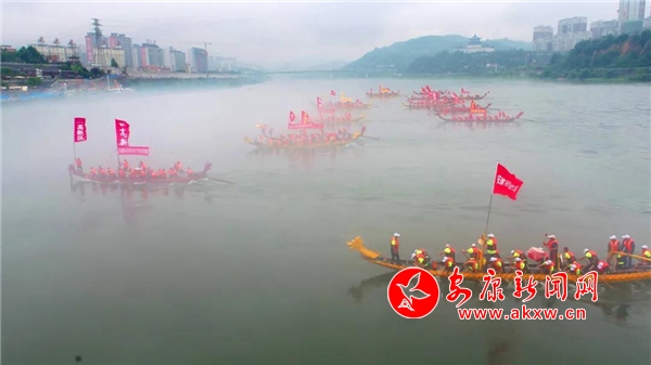 江面上,隨著五彩的煙花燃起,25艘龍舟正抖擻精神破浪而來,龍舟橫渡競賽顯秦巴好漢英雄本色和漢江兒女滿腔豪情,搶鴨子摸鯉魚帶給現場吉祥歡樂和意趣盎然,中國特技滑水隊通過高難度的花式水上表演讓觀眾多方面感受人與水互動的獨特魅力。