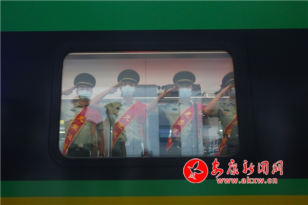 伴隨著汽笛聲響起,在難舍難分中,所有退伍老兵帶著支隊領(lǐng)導的囑托和戰(zhàn)友們的祝福,揮淚告別,踏上歸途。送行官兵列隊敬禮,向老兵們表達最后的敬意。