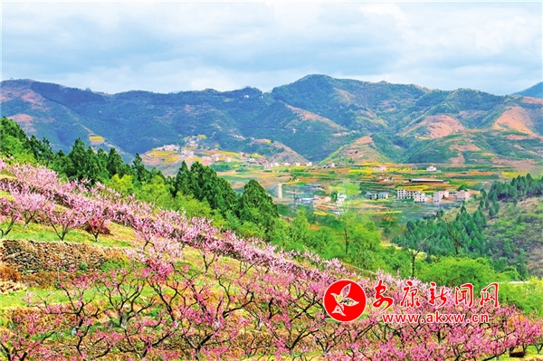 像汪祖新這樣種蔬菜的產業戶還有五六家,村里還發展了兩處桃園,漸漸做出名氣的李丹桃園就位于文化村,還有占地60多畝的陳勝桃園也日漸壯大。春日里,金色油菜花伴著粉紅桃花,李丹桃園的200余畝桃林映襯著山腳下的村莊。