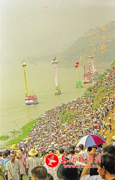 2000年,觀看第一屆安康龍舟節的群眾。 皮勇維 攝VEB安康新聞網