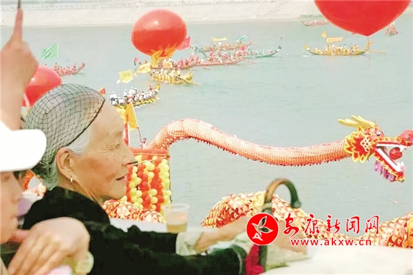 2004年,第五屆安康龍舟節上,一位安康老太太觀看龍舟賽。 吳定國 攝VEB安康新聞網