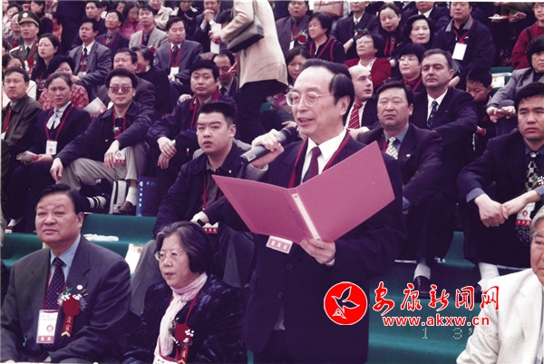 2002年,第三屆安康龍舟節上,時任全國人大常委會副委員長蔣正華宣布龍舟節開幕。 肖利英 攝VEB安康新聞網