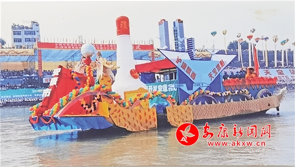 2003年,在第四屆安康龍舟節開幕式上,瀘康酒廠的“大酒瓶子”一時成為焦點。吳定國 攝VEB安康新聞網