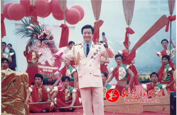 2002年5月2日,著名軍旅歌手閻維文在第三屆安康龍舟節開幕式上演唱。 趙方 攝VEB安康新聞網