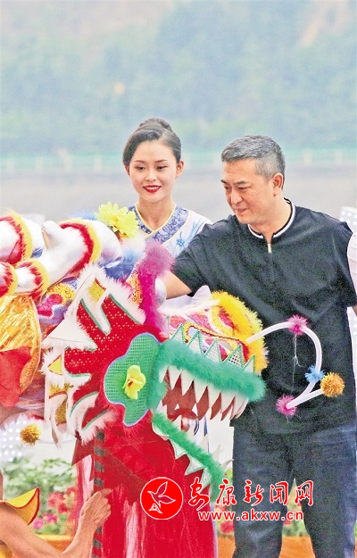 2018年,第十八屆安康龍舟節(jié)開幕式上,張嘉益為龍頭點睛。張喬 攝