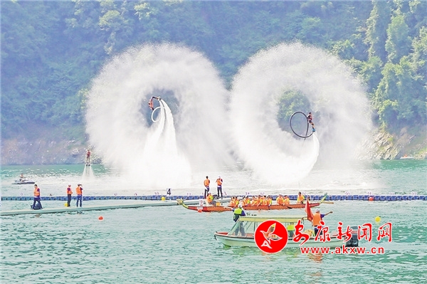 2019年,第十九屆安康龍舟節(jié)系列活動之瀛湖翠屏島水上表演。汪德珍 攝