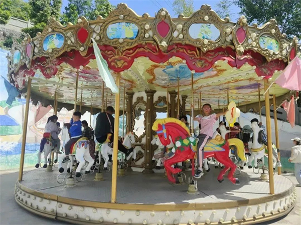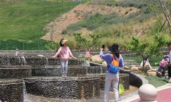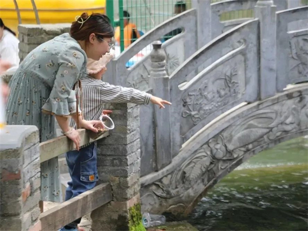 饒峰驛站的親子游樂園傳來孩子們的歡聲笑語,爛漫且文藝的月季花長廊下坐滿了游客,高空漂流的入口排滿了長隊,小朋友在露營燒烤的草坪上快樂奔跑、拍照留影,成為景區內又一道美麗的風景線。