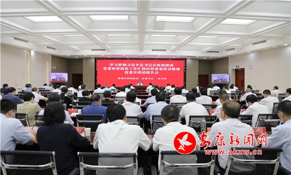 武文罡指出,習近平總書記的重要講話為陜西發(fā)展問診把脈、定盤把向,賦予新的使命新的任務(wù)、指出工作重點發(fā)力重點、教授思想方法工作方法,蘊含著堅定正確的政治方向、與時俱進的理論品質(zhì)、至純至厚的人民情懷、自我革命的內(nèi)在要求,彰顯了習近平新時代中國特色社會主義思想的真理力量,為我們奮進新征程、譜寫新篇章提供了根本遵循、注入了強勁動力。要深刻領(lǐng)會習近平總書記對陜西工作的肯定勉勵,堅定自覺用習近平總書記重要講話統(tǒng)一思想、統(tǒng)攬全局、統(tǒng)領(lǐng)工作,以勇立潮頭、爭當時代弄潮兒的志向和氣魄,始終不渝沿著習近平總書記指引方向奮勇前進。要深刻領(lǐng)會習近平總書記對陜西人民的關(guān)懷厚愛,把感恩之情轉(zhuǎn)化為牢記囑托、接續(xù)奮斗的高度自覺,轉(zhuǎn)化為攻堅克難、推動發(fā)展的強大動力,堅定不移緊跟偉大復興領(lǐng)航人踔厲篤行,以實際行動堅定擁護“兩個確立”、堅決做到“兩個維護”。
