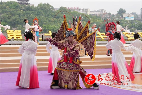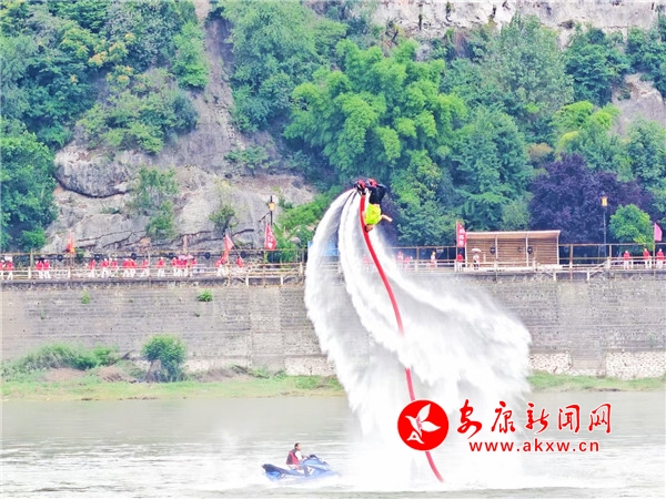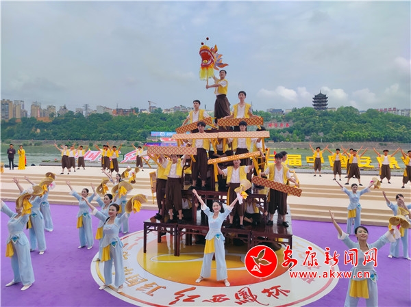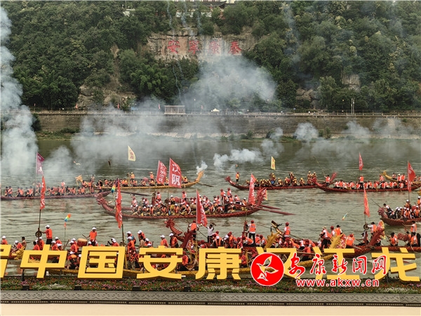 渾厚雄壯的“喊江調(diào)子”中,江面28艘龍舟抖擻精神、踏浪而來(lái),江岸健身龍表演同步登場(chǎng),朝氣蓬勃。歌舞《安安康康鬧龍舟》、陜南民歌聯(lián)唱《漢水歡歌》、龍舟橫渡、健身操《活力安康》配合摩托艇“水上飛人”、傳統(tǒng)漢劇《漢江上傳唱著漢調(diào)二黃》等精彩節(jié)目輪番上演,搶鴨子摸鯉魚、民俗舞蹈《方寸之間》等安康特有民俗節(jié)目將現(xiàn)場(chǎng)氛圍推上一輪又一輪高潮。最終,開幕式在歌舞《幸福安康》中圓滿落下帷幕。
