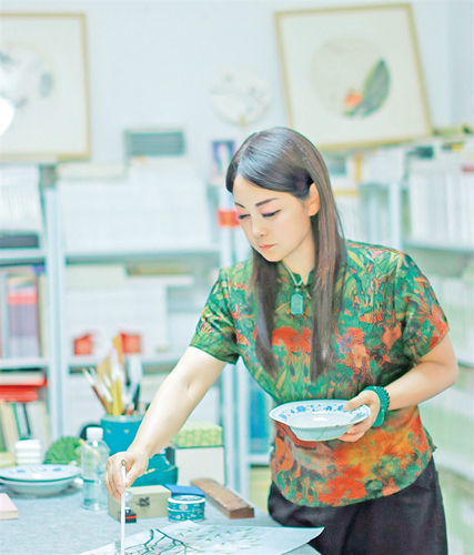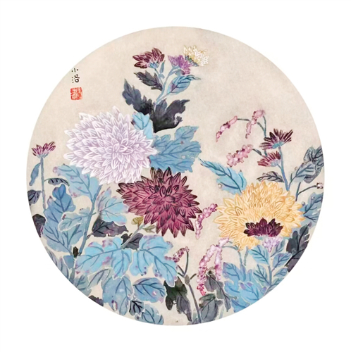 記者:除了詩歌和國畫,您還涉足了石頭畫、皮雕、裝飾畫等多種藝術形式。想了解一下您平時繪畫通常的尺寸?您認為您的優勢在哪里?弱點是什么,如何克服?