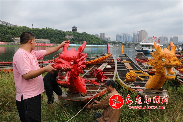 安康市體育服務管理中心主任、安康龍舟節主題活動水上導演劉平平介紹:“今天28支龍舟隊集結下水,下水后要安裝龍頭、龍尾、鑼架、鼓架和棹,達到翹頭翹尾的最美觀感。然后我們就要開始進行試水、適應性訓練、表演訓練和比賽項目訓練,爭取達到最佳的狀態參加比賽”。