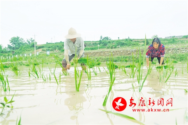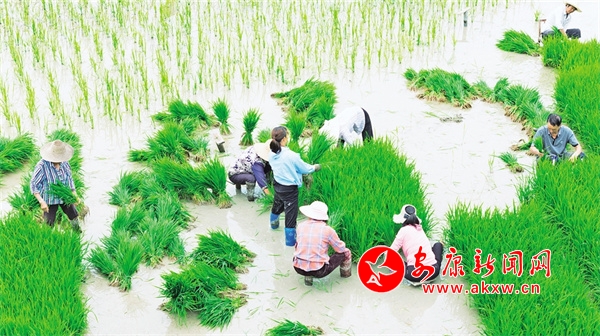 圖二:安康市恒口示范區袁莊村村民在進行水稻秧苗移栽。趙華斌 攝RSx安康新聞網