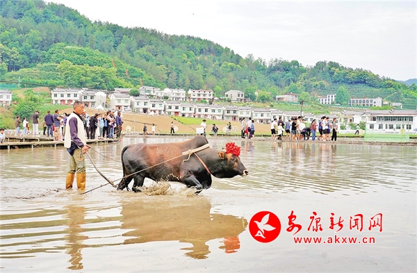 圖四:耕牛耙田。王韜 攝RSx安康新聞網