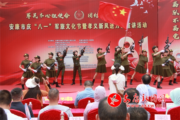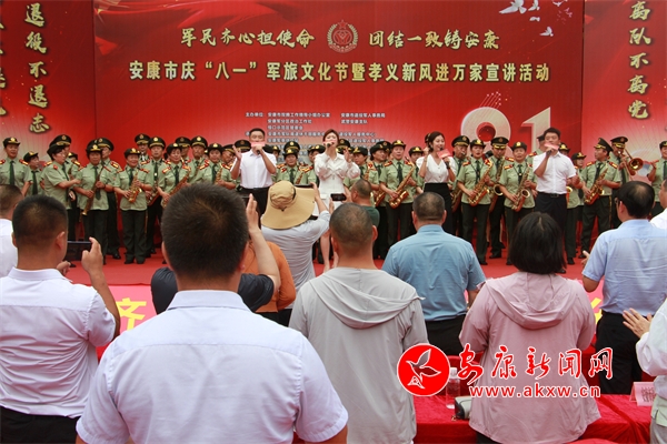 本網訊(記者 黃慧慧 通訊員 王典根)軍愛民,民擁軍,軍民融合情誼深。7月27日,由安康市雙擁工作領導小組辦公室、安康市退役軍人事務局、安康軍分區政治工作處、武警安康支隊、恒口示范區管委會共同主辦,以“軍民齊心擔使命 團結一致鑄安康”為主題的安康市慶“八一”軍旅文化節暨孝義新風進萬家宣講活動在恒口示范區南月村舉行,軍地領導、部隊官兵、退役軍人、現役軍人家屬及群眾代表共300余人參加活動。