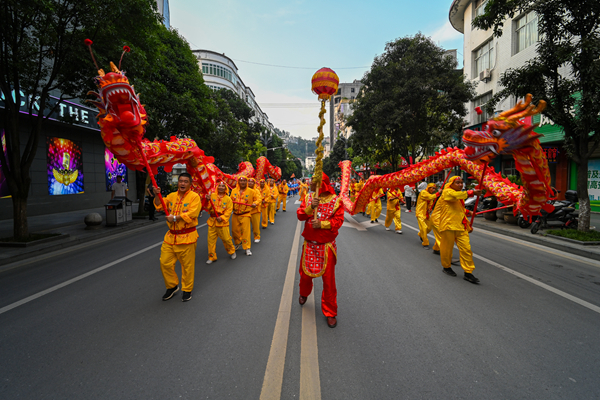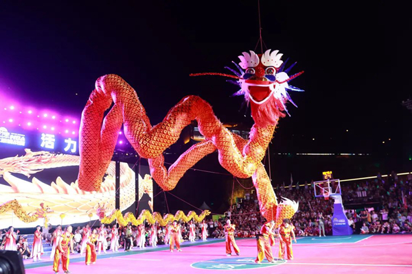 開幕式規(guī)模宏大,異常精彩。貴州廣播電視臺知名節(jié)目主持人、貴州村BA節(jié)目主持人李旭涵、劉子豪兩位重量級主持人親臨主持,熟練專業(yè)而又激情的引導(dǎo)互動為開幕式晚會增添爆棚氛圍。歌手沙寶亮傾情演唱《最初的信仰》《又回首》《暗香》等歌曲,世界散打冠軍、國家散打隊(duì)主教練許家恒,全國競走冠軍陳珍、全國青運(yùn)會冠軍田紫丹的互動以及本土節(jié)目《旗開得勝》《歡迎你到嵐皋來》《巴山魔芋情》等將嵐皋豐厚的旅游資源、特色產(chǎn)品、人文風(fēng)情展現(xiàn)得淋漓盡致。無比酷炫的燈光秀、煙花秀閃耀全場,56米巨龍騰空而起,光與影的交織變換構(gòu)成了一幅幅絕妙畫卷,現(xiàn)場掌聲雷動,喝彩聲、吶喊聲此起彼伏。