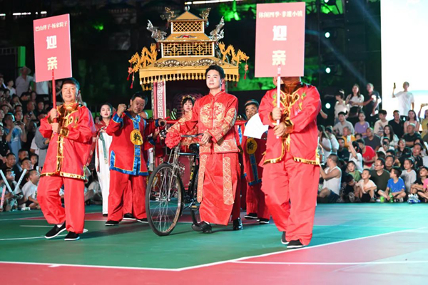 每晚7時,嵐皋廣場燈火輝煌,人聲鼎沸,各方游客、群眾集聚于此。來自川陜鄂渝蘇5省市的78支籃球隊(duì)每天輪番上演賽事,每一次精準(zhǔn)的投籃、激烈的對抗都引來觀眾陣陣喝彩,場上的激烈競爭與場下的熱鬧氛圍相互呼應(yīng),構(gòu)成了一幅生動而充滿活力的畫卷。中場休息時,舞臺上的表演同樣精彩紛呈,明星歌手的獻(xiàn)唱、本土歌舞、傳統(tǒng)民俗文化、漢調(diào)二黃……形式各樣的節(jié)目與賽事相得益彰,共同構(gòu)成了這場盛大賽事中不可或缺的一部分,讓每一位參與者都留下了難忘的記憶。