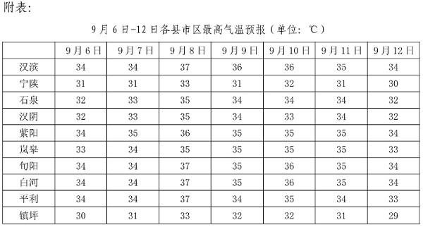 本網(wǎng)訊 9月6日12時,市氣象臺發(fā)布重要天氣報告:根據(jù)最新氣象觀測資料和數(shù)值預(yù)報分析,預(yù)計我市未來一周無區(qū)域性有效降水,仍維持晴熱少雨,8-11日將出現(xiàn)35℃以上高溫天氣,局地最高氣溫可達38℃以上;秦嶺和巴山沿線午后到夜間多分散性強對流性天氣,局地伴有短時強降水(10~30 毫米/小時)和雷暴大風(fēng)天氣。