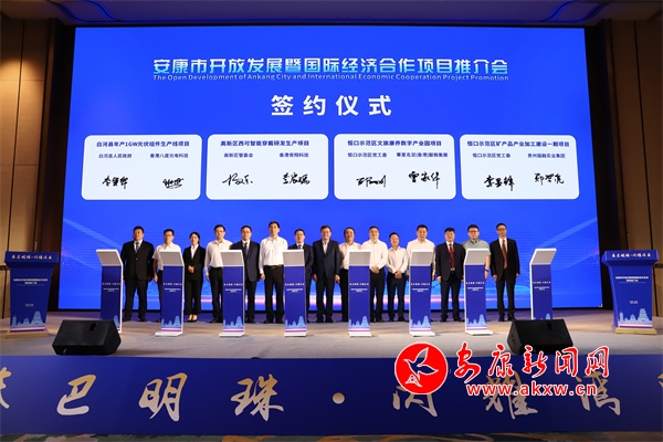 會上,市委常委、常務副市長黃戈授予東莞市電子信息產業協會、珠海市陜西商會、中山市陜西商會、佛山市陜西商會、江門市陜西商會“安康市對外經濟合作聯絡站”標牌。中國科學院院士、南方科技大學教授趙天壽發表了《碳中和儲能技術助推安康經濟高質量發展》主旨演講。市發改委、市市場監管局、漢濱區、白河縣、瀛湖生態旅游示范區等部門和縣區,圍繞富硒食品、新型材料、生態旅游、生物醫藥等重點產業鏈,發布了國際經濟合作項目。市科技局、市行政審批服務局、陜西信合安康審計中心圍繞科創政策、營商環境、金融保障等方面進行專題推介,多名科研院所專家現場發布科研成果產業化項目。現場集中簽約光伏組件、智能終端、毛絨玩具等16個招商引資項目,總投資44.9億元。2rx安康新聞網