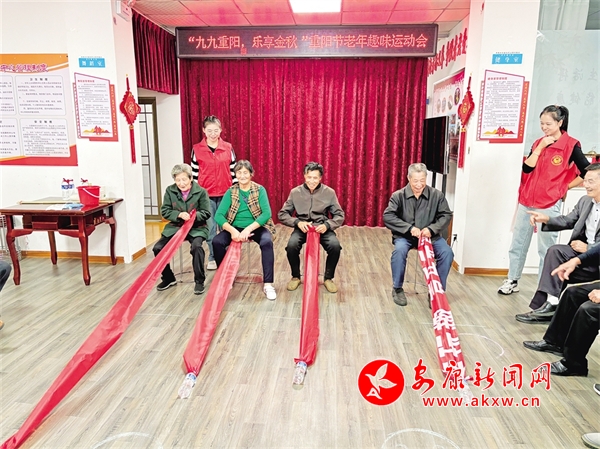 ⑥ 10月10日,石泉縣池河鎮(zhèn)西苑社區(qū)聯(lián)合池河鎮(zhèn)社工站開展“九九重陽、樂享金秋”重陽節(jié)老年趣味運動會。陳希溪 攝