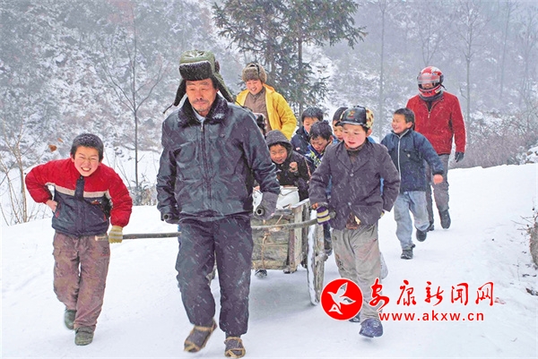 2007年冬天,學校水管上凍,師生齊力運水確保廚房用水。
