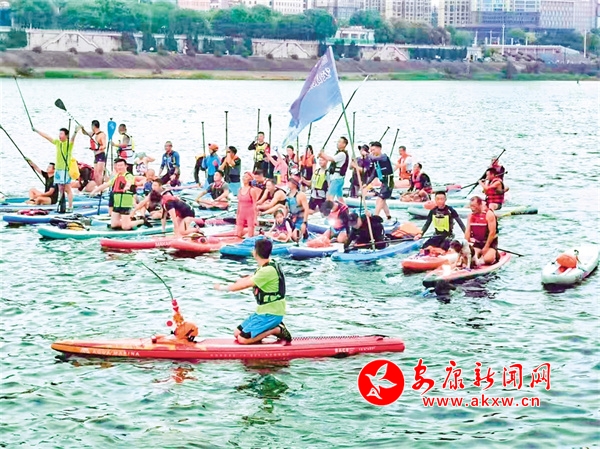 近年來,安康的水上運動,尤其是槳板運動吸引了越來越多的人關(guān)注,以其能促進人的反應能力、四肢協(xié)調(diào)能力、平衡能力等特點成為安康“最熱門”的水上運動之一,更多市民主動參與其中,在運動中收獲健康和快樂。很多人在岸邊看見了槳板也會主動上前詢問,這讓吳忠很高興,他說,從一開始的門可羅雀到現(xiàn)在槳板群的群友已經(jīng)有220多個人,槳板運動的魅力讓更多人遠離了麻將桌、酒桌,放下了手機,意識到了鍛煉身體的好處。醫(yī)生、警察、個體經(jīng)營者、普通職員……各行各業(yè)的人因為興趣加入了槳板運動的隊伍之中,又把槳板的魅力推向更多人,大家彼此介紹、互相熟悉了解,在收獲友誼和健康的同時,逐漸組成了一個“槳板社會”。