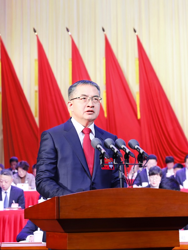 △市長王浩代表市人民政府作工作報告。記者 魏濤 攝