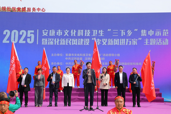 本網(wǎng)訊(通訊員 賈學(xué)林)文化惠民添活力,孝義新風(fēng)潤(rùn)安康。3月18日,2025年安康市文化科技衛(wèi)生“三下鄉(xiāng)”集中示范暨深化新民風(fēng)建設(shè)“孝義新風(fēng)進(jìn)萬家”主題活動(dòng)在漢陰縣澗池鎮(zhèn)舉行。市委常委、宣傳部部長(zhǎng)陳蓮宣布活動(dòng)啟動(dòng)并向“三下鄉(xiāng)”服務(wù)小分隊(duì)授旗。“三下鄉(xiāng)”市級(jí)成員單位、漢陰縣有關(guān)負(fù)責(zé)同志參加活動(dòng)。