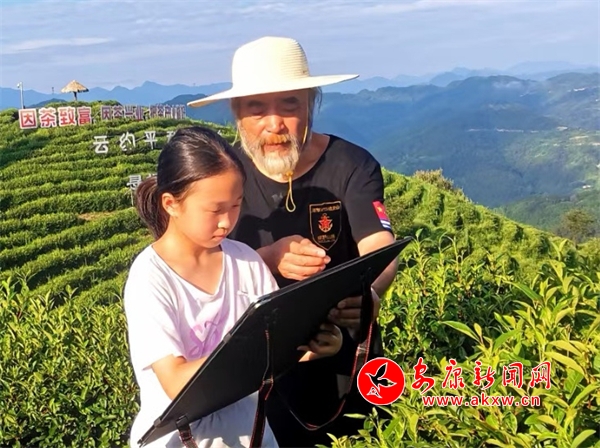 寧靜的校園里,一堂別開生面的美育課正在教學樓三樓展開。孩子們手握畫筆,將青瓦白墻的鄉(xiāng)村建筑、青蔥翠綠的茶山,化作一幅幅充滿童真卻飽含深意的水墨畫。