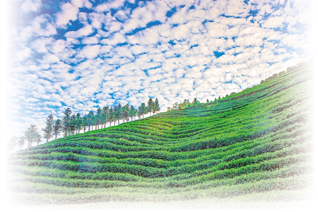 夕陽(yáng)為雙龍鎮(zhèn)茶園鍍上金邊,王慶發(fā)指著村里的樓房笑:“這都是茶葉換的!民宿也火了,綠水青山真成金山銀山了!”