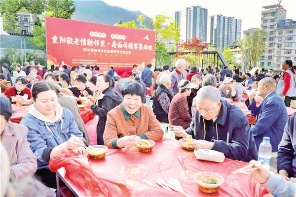 10月28日,嵐皋縣城關鎮西坡社區舉辦了“重陽敬老情融鄰里·壽面傳暖宴聚西坡”主題活動。廖霖 攝jhh安康新聞網