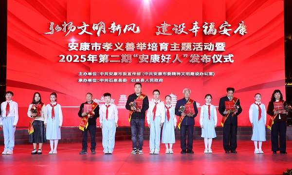 本次活動以“弘揚文明新風 建設(shè)幸福安康”為主題,由市委宣傳部主辦、石泉縣委和縣政府承辦,旨在深入學習貫徹黨的二十屆四中全會精神,扎實推進崇德向上幸福安康建設(shè)。活動現(xiàn)場,通過播放典型人物短片、現(xiàn)場互動訪談等形式,生動再現(xiàn)了陳登發(fā)、高虎、黃壽琴等好人代表的感人事跡。市級領(lǐng)導(dǎo)及“中國好人”“陜西好人”等先進典型代表為28名新入選的“安康好人”頒發(fā)紀念證書。活動現(xiàn)場同時發(fā)布了2025年安康市“新時代好少年”名單,24名青少年獲得殊榮。