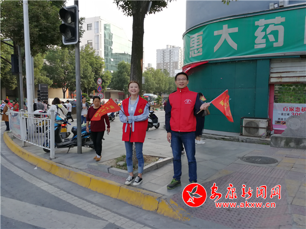 本網訊 為切實增強“車讓人,人守規”的自覺性,提升城市廣大居民文明出行意識。9月27日上午,市委網信辦志愿者服務隊在安火路十字開展“車讓人,人守規”文明交通勸導活動。wE7安康新聞網
