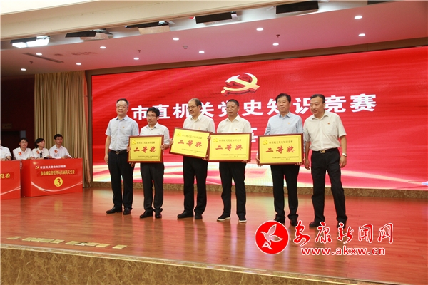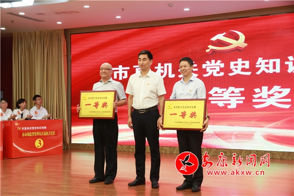 據(jù)了解,本次活動(dòng)由市直機(jī)關(guān)工委、市委黨史研究室主辦,分書面答題競(jìng)賽和組隊(duì)競(jìng)賽兩部分進(jìn)行。6月28日前已組織8900名市直機(jī)關(guān)黨員干部參加書面答題競(jìng)賽,并選送了優(yōu)秀試卷。組隊(duì)競(jìng)賽分初賽、預(yù)賽、復(fù)賽和決賽四個(gè)階段進(jìn)行,9月7日在市委黨校舉行了初賽,68個(gè)市直機(jī)關(guān)黨組織組建62支代表隊(duì)進(jìn)行了閉卷書面答題。根據(jù)每個(gè)代表隊(duì)3名隊(duì)員得分總成績(jī)排序,市委辦機(jī)關(guān)黨委等36支代表隊(duì)進(jìn)入了預(yù)賽。9月23至24日,以抽簽分組形式進(jìn)行了預(yù)賽和復(fù)賽的現(xiàn)場(chǎng)競(jìng)賽,最終勝出的6支代表隊(duì)進(jìn)入決賽。