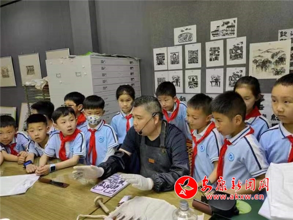 師生們?cè)谌核囸^老師帶領(lǐng)下觀摩了“藝橋飛架童心筑夢(mèng)”蘇陜?cè)ト∪厣賰喊娈嬚梗环芳炎鳎憩F(xiàn)出童心、童趣,弘揚(yáng)著中華優(yōu)秀傳統(tǒng)文化,培育和踐行社會(huì)主義核心價(jià)值觀,傳遞著新時(shí)代少年兒童心中的美好心愿和遠(yuǎn)大夢(mèng)想,讓同學(xué)們心中種下了一顆藝術(shù)的種子。緊接著同學(xué)們來到版畫工坊,實(shí)地參觀專業(yè)老師版畫制作過程,從專業(yè)老師的制作中,明白了一張版畫是如何誕生的。
