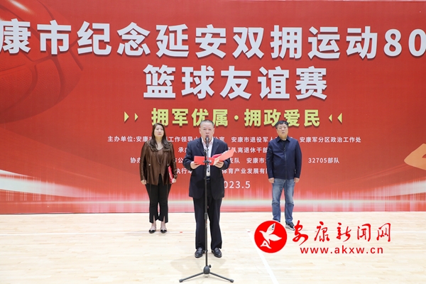 本網訊(記者 劉淵 通訊員 王典根)5月22日,由市雙擁辦、市退役軍人事務局、安康軍分區政治工作處主辦,市軍隊離退休干部服務中心承辦,市公安局、武警安康支隊、市消防救援支隊、32705部隊協辦的全市紀念延安雙擁運動80周年籃球友誼賽在城投安體運動中心正式開幕。