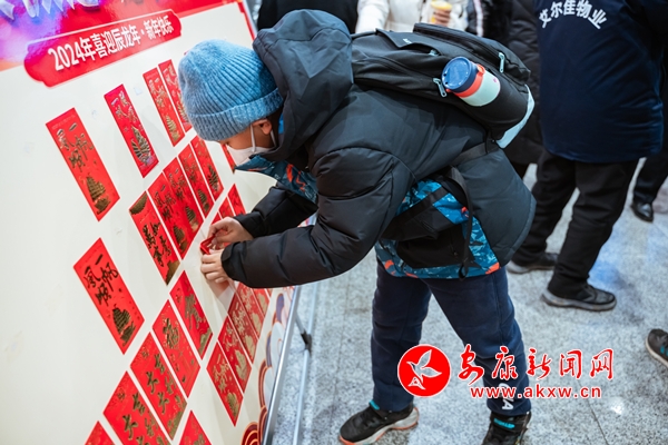 活動中,“驛路安康”愛心服務(wù)熱線工作人員身著安安、康康、龍辰辰人偶服,穿梭在人群中,一邊分發(fā)福字、對聯(lián),一邊與旅客們互動交流、合影留念。他們現(xiàn)場扶老攜幼、答疑解惑,熱情周到的服務(wù)溫暖了在場每一名旅客。