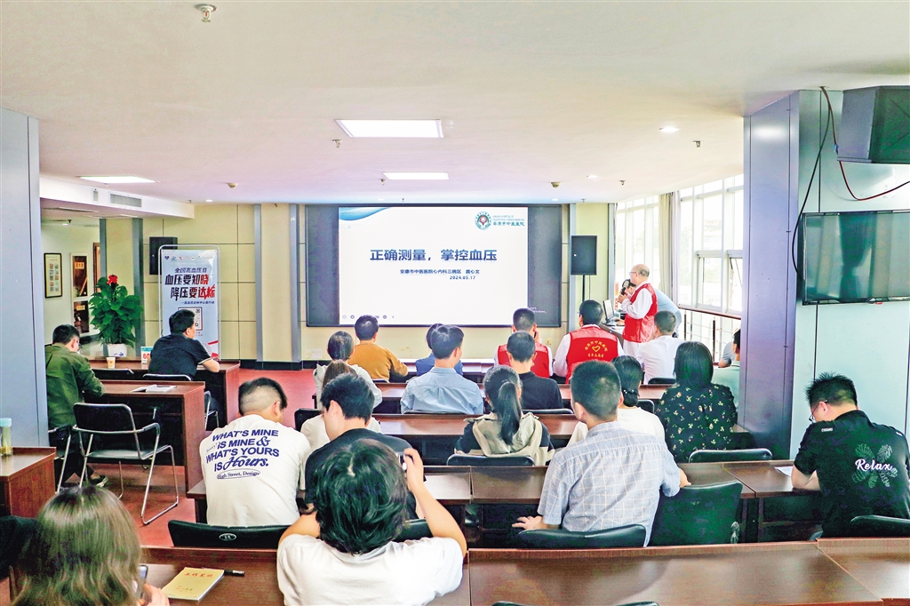 本網(wǎng)訊(記者 翟本榮/文 吳單/圖)5月17日是第20個(gè)世界高血壓日,當(dāng)天上午,安康日?qǐng)?bào)社邀請(qǐng)市中醫(yī)醫(yī)院高新分院相關(guān)專家,來單位開展“有效控制 健康長壽”高血壓及康復(fù)醫(yī)療健康科普知識(shí)專題講座。報(bào)網(wǎng)全體干部職工70余人參加。