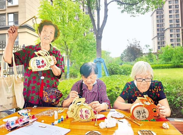 9月12日,漢濱區(qū)江北街道后張嶺社區(qū)在山水嶺居小區(qū)舉辦“中秋佳節(jié)情意濃,文明風(fēng)尚萬(wàn)家揚(yáng)”活動(dòng)。活動(dòng)由居民自己創(chuàng)意進(jìn)行文采、繪畫(huà)展示。(胡建波 攝)