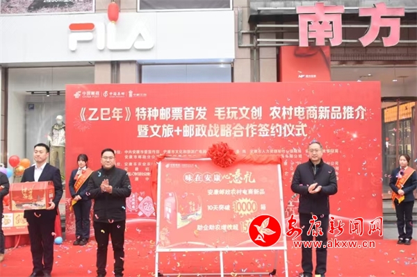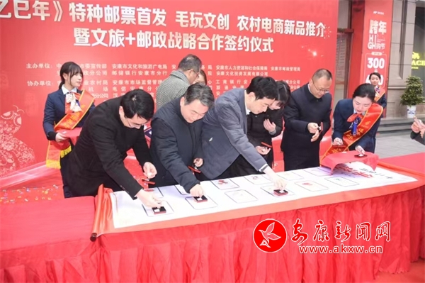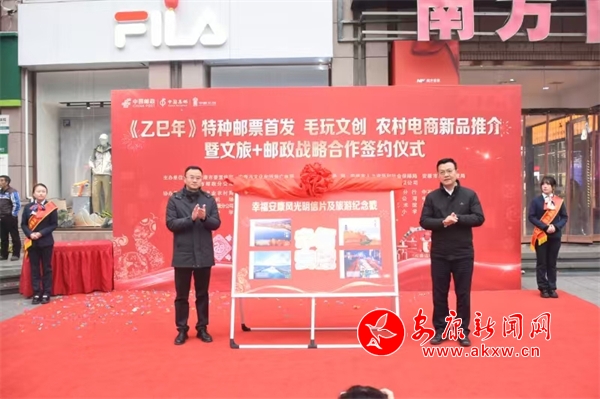 首發活動在安康學院學生一支歡快雀躍的串燒街舞中拉開序幕,安康郵政今年將己發行的生肖郵票結合安康地方文化宣傳元素,創意設計《生肖集!芳乜,現場為《生肖集!芳乜ā埬晗盗忻娈a品新品發布、“味在安康”電商禮盒等揭幕,進一步推動全市文旅事業發展。