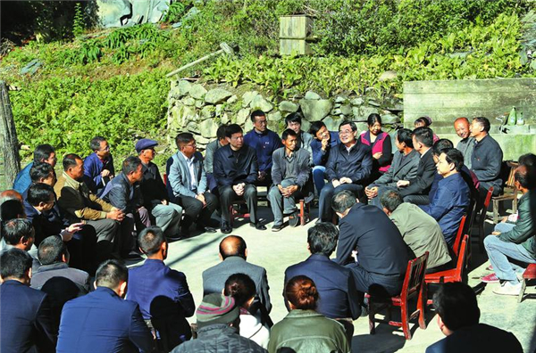 (10月10日,省委書記胡和平深入嵐皋縣南宮山鎮西河村,與部分群眾及鎮村干部進行座談,了解扶貧工作進展,聽取群眾意見建議,與大家一起商討脫貧致富的措施。陜西日報記者 宋紅梅/攝) w3Y安康新聞網
