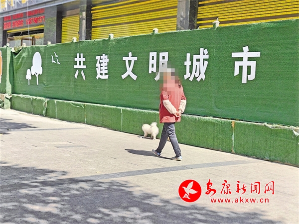 4月8日,有市民在安康中心城區巴山西路人行道不牽繩遛狗。(鄭時根 攝)……