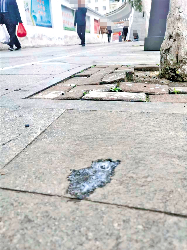 3月26日,有市民在安康中心城區馬坎天橋附近隨地吐痰。記者 潘潤生 攝……