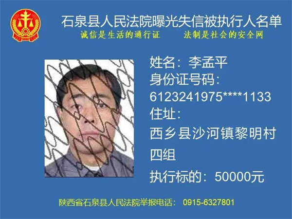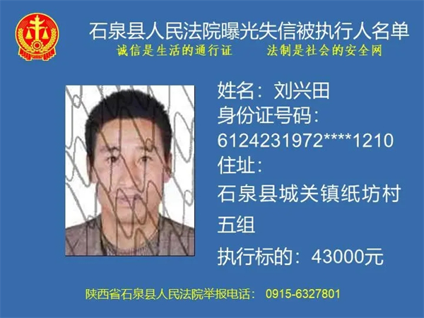 為了進一步加大執行力度,保障勝訴當事人的合法權益,推進社會誠信體系建設,依照《中華人民共和國民事訴訟法》《最高人民法院關于公布失信被執行人名單信息的若干規定》等法律、司法解釋的有關規定,現對一批已進入執行程序,且尚未全部履行義務的被執行人進行媒體曝光,歡迎廣大群眾支持石泉縣人民法院的工作,向我院提供被執行人的財產線索,使生效法律文書能夠得到切實執行,讓人民群眾切實感受到公平正義就在身邊。