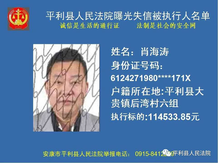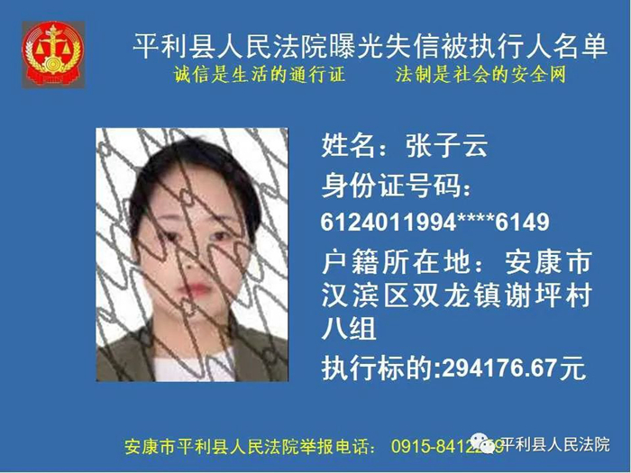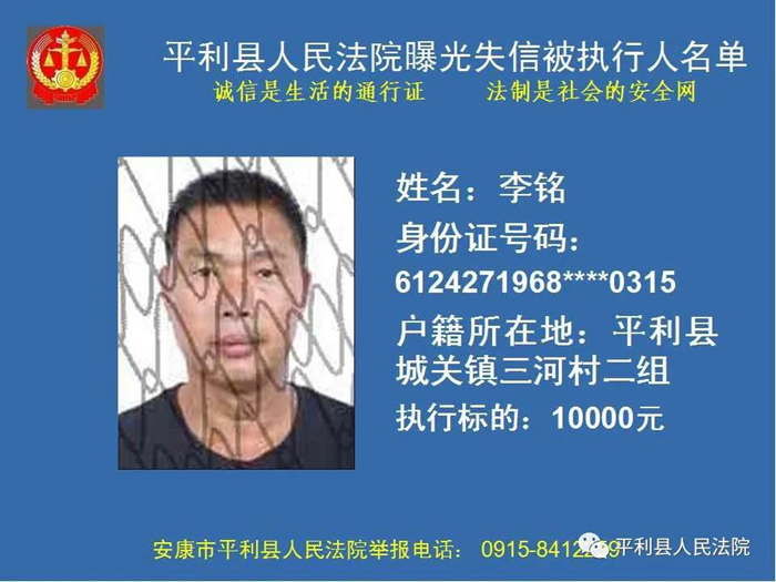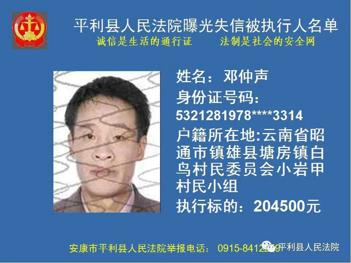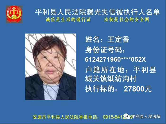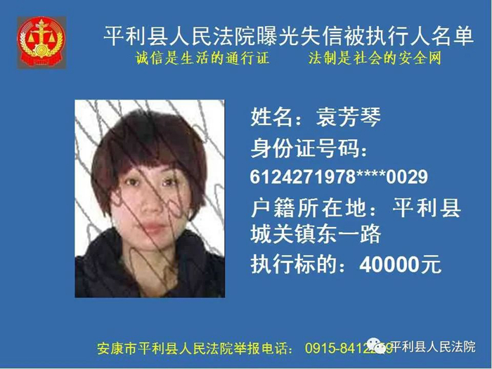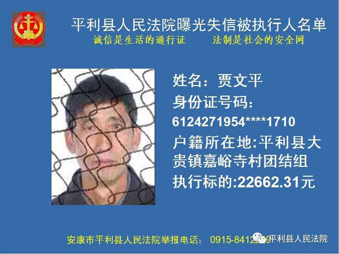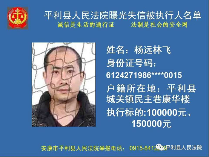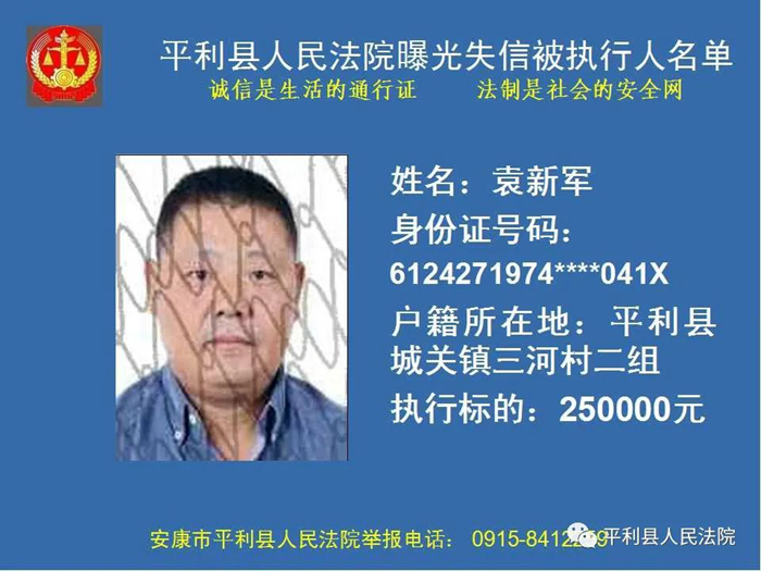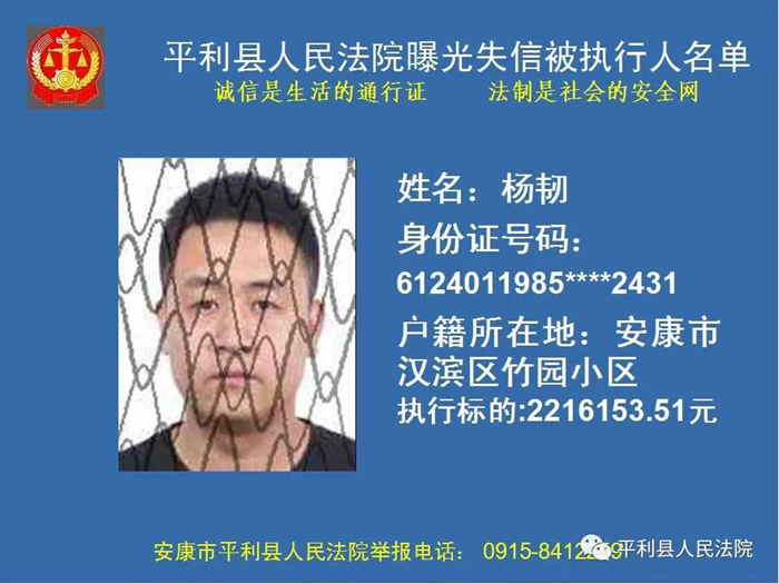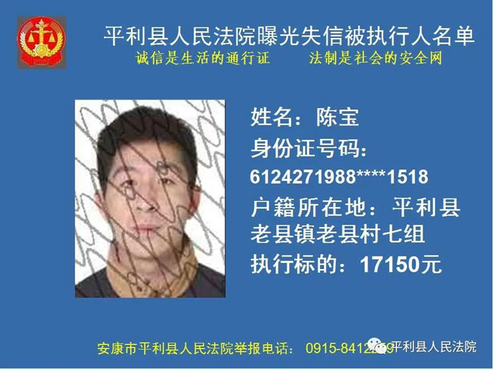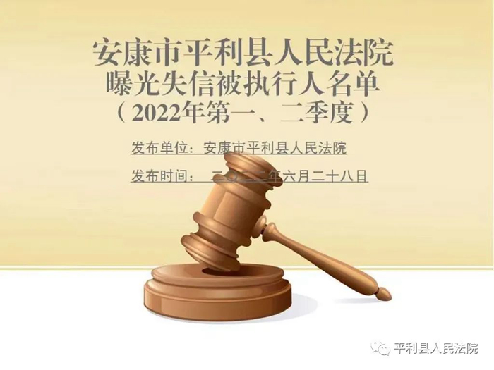 曝光失信 | 平利縣人民法院曝光失信被執行人名單(2022年第一、二季度)