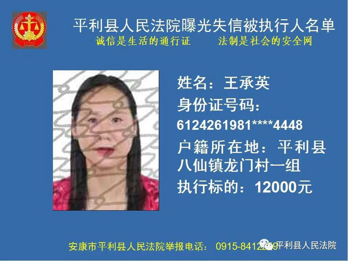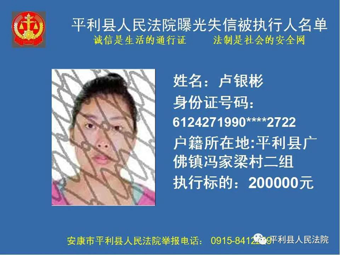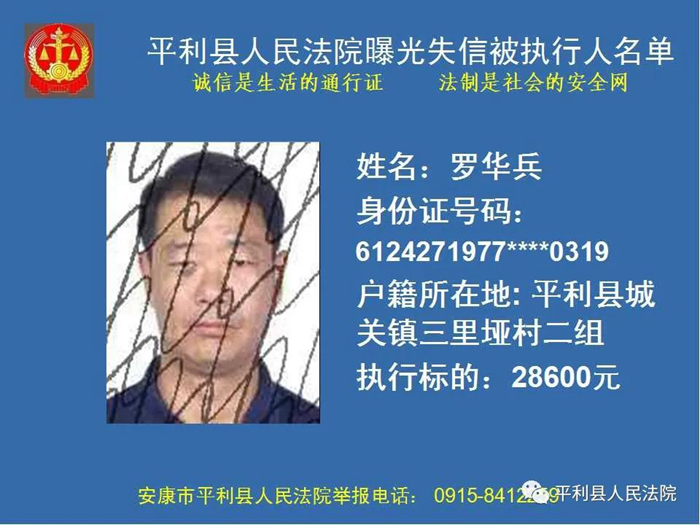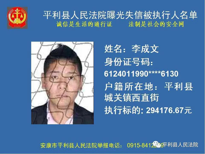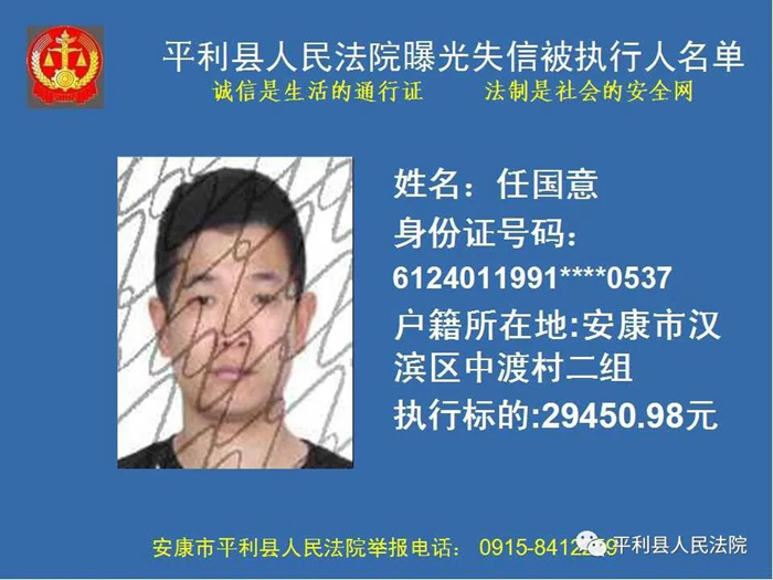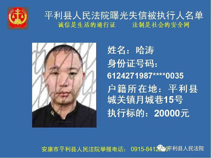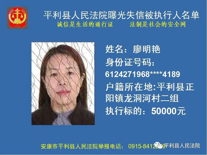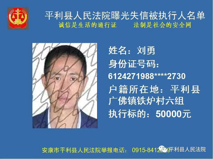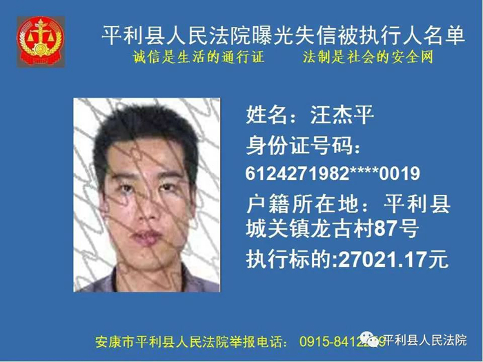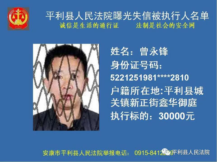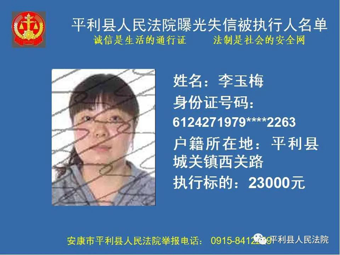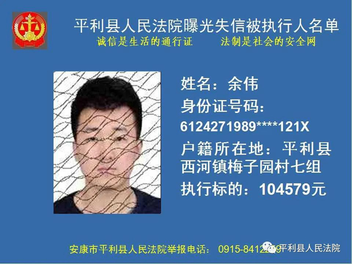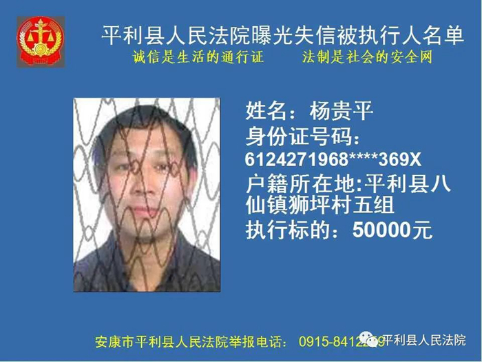 曝光失信 | 平利縣人民法院曝光失信被執行人名單(2022年第一、二季度)